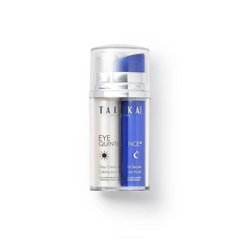 Eye Quintessence is the Ultimate eye care, the combination of 2 clinically proven formulas that care for all signs of aging around the eye area. Combining in a double-bottle a Day Cream and a Night Serum containing ingredients which act in synergy to “refresh” the eyes from the 1st application, the formula reduces the 9 main signs of skin aging from the very first use.